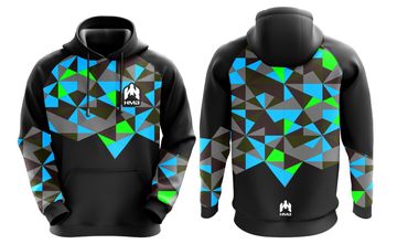 HMB Geometric Tri-Color Hoodie – Black with Blue, Green & Gray Accents