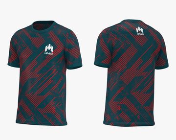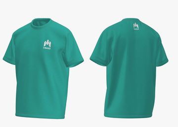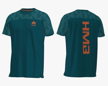 Turquoise round-neck t-shirt with HMB branding on front and back. A clean and casual design for everyday comfort