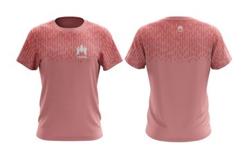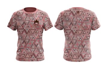 Geometric patterned t-shirt in shades of pink, gray, and black, A bold and stylish choice for casual wear.