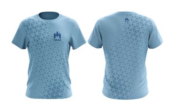 Light blue t-shirt with geometric triangle pattern and HMB branding. A stylish and modern casual wear option